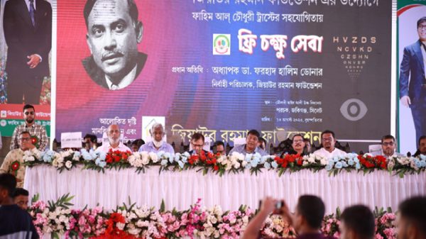 সিলেট বিএম ডেস্ক ::: একাধিক লাইনে দাঁড়িয়ে রেজিস্ট্রেশন করছেন চোখের সমস্যায় থাকা রোগীরা। কারো বয়স আশি, কারো বা চল্লিশ। নারী ও পুরুষ প্রায় দেড় হাজার রোগী বৃহস্পতিবার জড়ো হন সিলেটের জকিগঞ্জের মহিদপুরের মৌলিভী ছাইর আলী উচ্চ বিদ্যালয়ে মাঠে। ১২টি বুথে তাদের রেজিস্ট্রেশনের পর চিকিৎসা সেবা দেন একদল চিকিৎসক। বিপুল সংখ্যক রোগীদের এমন সেবার উদ্যোগ নেয় জিয়াউর রহামন ফাউন্ডেশন। এতে সহযোগিতা করে ফাহিম আল চৌধুরী ট্রাস্ট। আলোকিত দৃষ্টি, মানবিক বন্ধ-চোখের আলো ফিরিয়ে দিতে জিয়াউর রহমান ফাউন্ডেশন-প্রতিপাদ্যকে সামনে রেখে বৃহস্পতিবার সিলেটের জকিগঞ্জ ও কানাইঘাটে মাসব্যাপী ফ্রি চক্ষু সেবার উদ্বোধনী অনুষ্ঠানে প্রধান অতিথির বক্তব্য দেন জিয়াউর রহমান ফাউন্ডেশনের নির্বাহী পরিচালক ও বিএনপির চেয়ারপার্সনের উপদেষ্টা অধ্যাপক ডা. ফরহাদ হালিম ডোনার। ভার্চুয়ালি বক্তব্য দেন ফাহিম আল চৌধুরী ট্রাস্ট এর চেয়ারম্যান শিক্ষানুরাগী ও সমাজসেবী ফাহিম আল চৌধুরী।