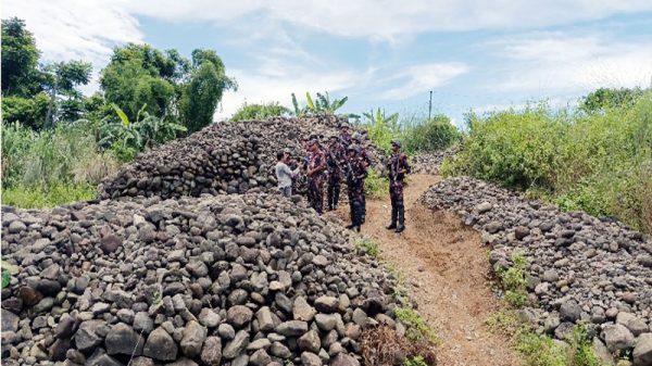 বিজিবি জানায়, গত কয়েক বছর ধরে স্থানীয় কিছু অসাধু চক্র উৎমাছড়া থেকে অবৈধভাবে পাথর উত্তোলন করে আদর্শপাড়া গ্রামের বিভিন্ন স্থানে পাচারের উদ্দেশ্যে মজুদ করে।