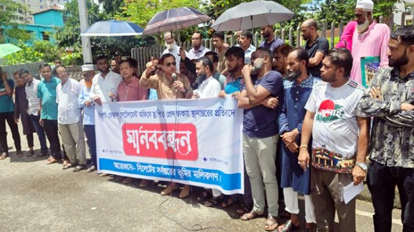 সিলেট বিএম ডেস্ক ::: সিলেটের ভূমির মালিকদের জন্য অত্যন্ত গুরুত্বপূর্ণ একটি সেবা, জোনাল সেটেলমেন্ট অফিসের প্রেস ঢাকায় স্থানান্তরের পাঁয়তারা চলছে বলে অভিযোগ উঠেছে। এই খবরে সিলেটজুড়ে তীব্র ক্ষোভ দেখা দিয়েছে। এর প্রতিবাদে সিলেটের সর্বস্তরের ভূমির মালিকদের ব্যানারে একটি মানববন্ধন অনুষ্ঠিত হয়েছে। বুধবার (২০ আগস্ট) সকাল ১১ টায় সিলেট কেন্দ্রীয় শহীদ মিনারে এই মানববন্ধন অনুষ্ঠিত হয়।