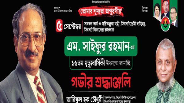 তার মৃত্যুবার্ষিকী উপলক্ষে সিলেটে খতমে কুরআন, আলোচনা সভা ও মিলাদ মাহফিলের আয়োজন করা হয়েছে।