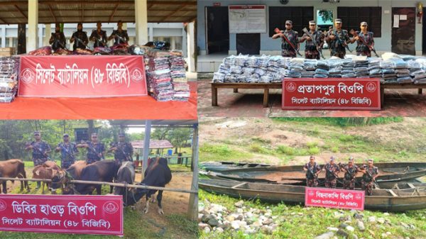 বিজিবি ৪৮ ব্যাটালিয়ন সূত্র জানায়, গত দুই দিনে প্রতাপপুর, বিছনাকান্দি, ডিবিরহাওর, সোনারহাট, কালাসাদেক ও কালাইরাগ সীমান্ত ফাঁড়ির টহল দল বিভিন্ন স্থানে অভিযান চালায়। এছাড়া ব্যাটালিয়ন সদরের একটি বিশেষ দল অভিযান চালায় সিলেট নগরীর নাইওরপুল এলাকায়।