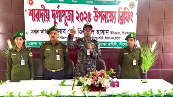 তিনি বলেন, সনাতন ধর্মালম্বীদের সর্বোচ্চ ধর্মীয় অনুষ্ঠান শারদীয় দুর্গাপূজা অত্যন্ত ভাবগাম্ভীর্য ও উৎসবমুখর পরিবেশে উদযাপনের লক্ষ্যে বাংলাদেশ আনসার ও গ্রাম প্রতিরক্ষা বাহিনীর মহাপরিচালক মেজর জেনারেল আবদুল মোতালেব সাজ্জাদ মাহমুদ, এসজিপি, বিএএম, এনডিইউ, এএফডব্লিউসি, পিএসসি এর নির্দেশনা মোতাবেক সারাদেশের ন্যায় সিলেট রেঞ্জেও চারটি জেলায় ২৭০৩ টি পূজা মন্ডপে ১৭১৭৮ জন (প্রায়) আনসার ভিডিপি সদস্য/সদস্যা মোতায়েন থাকবেন ।