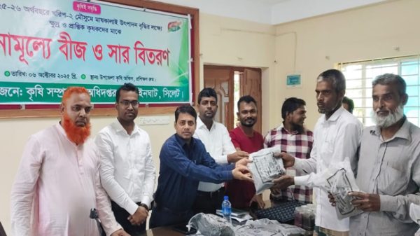 » গোয়াইনঘাটে কৃষকদের মাঝে বিনামূল্যে বীজ, সার ও কৃষি যন্ত্রপাতি বিতরণ