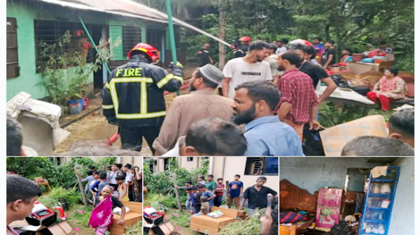 » সিলেট কালীবাড়ী এলাকায়-গ্যাস সিলিন্ডার বিস্ফোরণে বাসায় আগুন