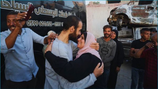 পশ্চিম তীরের বেইতুনিয়া ও গাজার খান ইউনিসে শত শত ফিলিস্তিনি বন্দিদের স্বাগত জানাতে জড়ো হন। অনেকে পতাকা হাতে উল্লাস প্রকাশ করেন এবং মুক্তিপ্রাপ্তদের ফুল দিয়ে বরণ করেন।