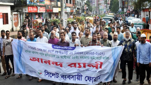 » সিলেট চেম্বার নির্বাচনের স্থগিতাদেশ খারিজ হওয়ায় নগরীতে ব্যবসায়ী ফোরামের আনন্দ র্যালি