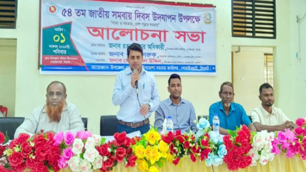 শনিবার (১ নভেম্বর) সকালে উপজেলা প্রশাসন ও উপজেলা সমবায় কার্যালয়ের আয়োজনে উপজেলা পরিষদ মিলনায়তনে অনুষ্ঠিত আলোচনা সভায় প্রধান অতিথি হিসেবে উপস্থিত ছিলেন গোয়াইনঘাটের উপজেলা নির্বাহী অফিসার রতন কুমার অধিকারী।