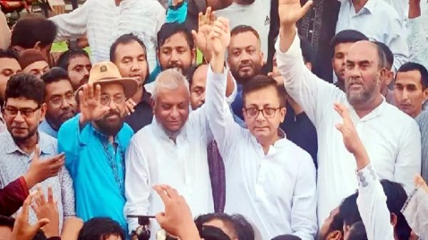 সিলেট বিএম ডেস্ক ::: তাঁরা দুজনই বিএনপির চেয়ারপার্সনের উপদেষ্টা, দুজনই সিলেট-১ আসনে বিএনপির মনোনয়ন প্রত্যাশী ছিলেন, দুজনের নামে সিলেটে বিএনপির আলাদা বলয় গড়ে ওঠেছে- তবে শুক্রবার তাদের দুজনকে দেখা গেলো সিলেটে একসাথে রাজপথে। ঐতিহাসিক ৭ নভেম্বর উপলক্ষ্যে জেলা ও মহানগর বিএনপি আয়োজিত কর্মসূচীতে একসাথে অংশ নেন খন্দকার মুক্তাদির আহমদ ও আরিফুল হক চৌধুরী।