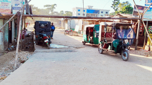 » শাহ আরেফিন টিলার পাথর লুট ঠেকাতে সড়কে লোহার বেষ্টনী