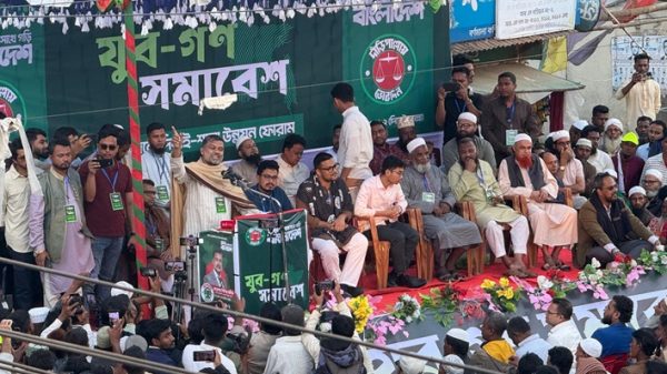 সিলেট বিএম ডেস্ক ::: সুনামগঞ্জ-২ (দিরাই-শাল্লা) আসনে জামায়াতে ইসলাম মনোনীত সংসদ সদস্য প্রার্থী ও সুপ্রিম কোর্টের আইনজীবী এডভোকেট শিশির মনির বলেছেন, বিজয়ী হলে প্রতিহিংসার রাজনীতি পরিহার করে উন্নয়নকে সর্বোচ্চ অগ্রাধিকার দেওয়া হবে। রাজনৈতিক ভিন্নমত থাকলেও প্রতিদ্বন্দ্বীদের গুরুত্বপূর্ণ দায়িত্ব দিয়ে একসঙ্গে কাজ করা হবে। বকাবকি বা শত্রুতা নয় আলোচনার মাধ্যমে রাজনৈতিক মতপার্থক্য দূর হবে। আমরা চাই এমন বাংলাদেশ, যেখানে সকল পক্ষ মিলেই সিদ্ধান্ত নেবে।