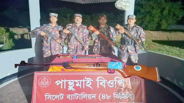 সিলেট ব্যাটালিয়ন (৪৮ বিজিবি)-এর অধিনায়ক জানান, সীমান্ত এলাকায় অস্ত্র পাচার ও চোরাচালান প্রতিরোধে বিজিবির অভিযানিক কার্যক্রম ও গোয়েন্দা তৎপরতা অব্যাহত রয়েছে। দেশের স্থিতিশীল পরিস্থিতিকে যেন কোনোভাবেই এসব অবৈধ অস্ত্র চোরাচালান এর মাধ্যমে অস্থিতিশীল করতে না পারে এ ব্যাপারে বিজিবি সর্বদা সচেষ্ট রয়েছে। উদ্ধারকৃত অবৈধ অস্ত্রের বিষয়ে আইনানুগ ব্যবস্থা গ্রহণ প্রক্রিয়াধীন।