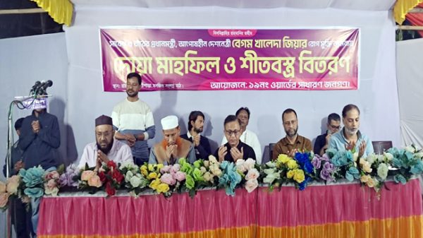 সিলেট বিএম ডেস্ক ::: ১৯নং ওয়ার্ডের সাবেক কাউন্সিলর শওকত আমীন তৌহিদ এর উদ্যোগে বিএনপি চেয়ারপার্সন বেগম খালেদা জিয়ার আশু রোগ মুক্তি কামনা করে দোয়া মাহফিল অনুষ্ঠিত হয় এবং শীতার্ত মানুষের মাঝে শীত বস্ত্র বিতরণ করা হয়।