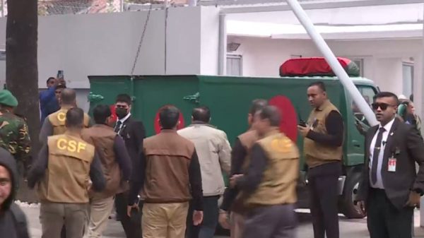 সিলেট বিএম ডেস্ক ::: সাবেক প্রধানমন্ত্রী ও বিএনপির চেয়ারপারসন খালেদা জিয়ার মরদেহ তার গুলশানস্থ বাসভবন ‘ফিরোজায়’ নেওয়া হয়েছে। আজ বুধবার সকাল ৯টা ১৫ মিনিটে তাকে বহনকারী বাংলাদেশের পতাকায় মোড়ানো একটি গাড়িটি ফিরোজায় প্রবেশ করে। সকাল ৯টার একটু আগে এভারকেয়ার হাসপাতাল থেকে তিনবারের প্রধানমন্ত্রীর মরদেহ বের করা হয়। ফিরোজা ভবনে তাকে শেষবারের মতো শ্রদ্ধা জানাবেন স্বজন ও দলীয় নেতাকর্মীরা।