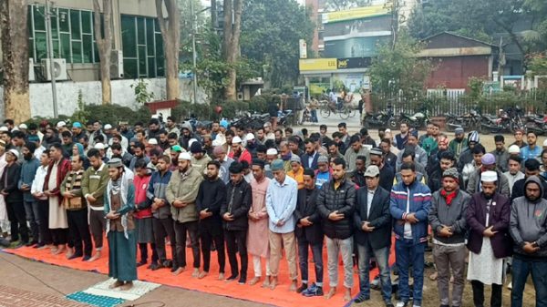 বুধবার (৩১ ডিসেম্বর) বিকেলে সাড়ে ৪টার দিকে সিলেট কেন্দ্রীয় শহীদ মিনারে এই গায়েবানা জানাজা অনুষ্ঠিত হয়। এতে অংশগ্রহণ করেন সিলেটের সাধারণ মানুষ।