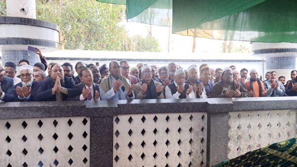 সিলেট বিএম ডেস্ক ::: সিলেটে হযরত শাহজালাল ও শাহপরাণ (র.) এর মাজার জিয়ারত করেছেন মির্জা ফখরুল ইসলাম আলমগীর। রবিবার (৪ জানুয়ারি) বাদ আসর প্রথমে হযরত শাহজালাল ও পরে হযরত শাহ পরাণ (র.) মাজার জিয়ারত করেন। এসময় তিনি সদ্যপ্রয়াত বিএনপি চেয়ারপার্সন বেগম খালেদা জিয়া, শহীদ রাষ্ট্রপতি জিয়া উর রহমানসহ দলীয় সব মৃত নেতাকর্মীদের আত্মার মাগফেরাত কামনা এবং দেশ জাতি ও আগামী নির্বাচনে দলের সার্বিক সাফল্যের জন্য মোনাজাত করেন।