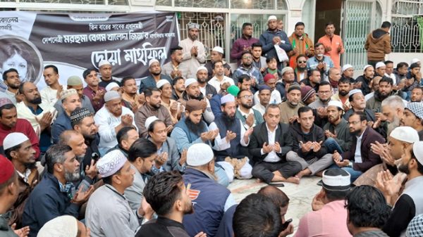 মিলাদ ও দোয়া মাহফিলে নেতৃবৃন্দ বলেন, দেশের গণতন্ত্র পুনরুদ্ধার ও মানুষের ভোটাধিকার প্রতিষ্ঠার সংগ্রামে দেশনেত্রী বেগম খালেদা জিয়া আপোষহীন নেতৃত্ব দিয়ে গেছেন। তিনি শুধু একটি দলের নেত্রী নন, বরং এ দেশের গণতন্ত্রকামী মানুষের আশা-আকাঙ্ক্ষার প্রতীক। দীর্ঘদিন ধরে তিনি ফ্যাসিবাদী দমন-পীড়নের শিকার হয়ে কারাবরণ করেছেন এবং গুরুতর অসুস্থতা নিয়েও সাহসিকতার সঙ্গে সংগ্রাম চালিয়ে গিয়েছেন। দেশনেত্রী বেগম খালেদা জিয়ার অবদান দেশের মানুষ কখনো ভুলতে পারবে না। তাকে মানুষ আজীবন শ্রদ্ধাভরে স্মরণ করে যাবে।
