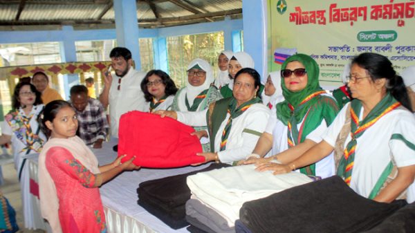 » শীাতার্তদের মাঝে বাংলাদেশ গার্ল গাইডস্ এসোসিয়েশন সিলেট অঞ্চলের শীতবস্ত্র বিতরণ