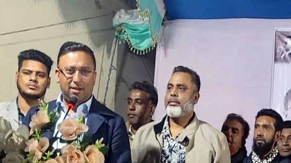 জুলাই গণআন্দোলনে নিহত পঙ্কজ কুমার কর-এর পিতা নিখিল চন্দ্র করের উপস্থিতি সভায় আবেগঘন পরিবেশ তৈরি করে।