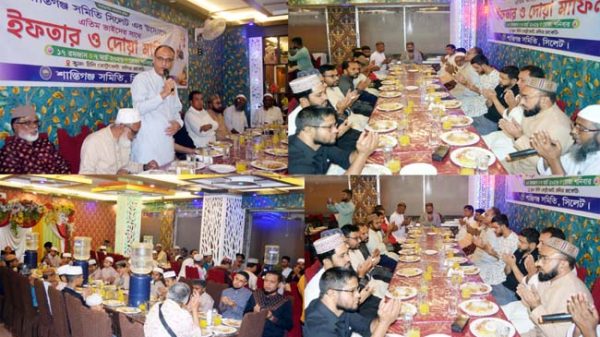 সিলেট বিএম ডেস্ক ::: সিলেটে বসবাসরত শান্তিগঞ্জ উপজেলাবাসীর সংগঠন ‘শান্তিগঞ্জ সমিতি সিলেট’-এর উদ্যোগে ইফতার ও দোয়া মাহফিল অনুষ্ঠিত হয়েছে। গতকাল শনিবার ১৭ রমজান নগরীর মদিনা মার্কেটস্থ একটি অভিজাত পার্টি সেন্টারে এই মাহফিল অনুষ্ঠিত হয়। অনুষ্ঠানে এলাকার প্রায় ৫০ জন এতিম শিশু ও মাদ্রাসার শিক্ষকবৃন্দ অংশ নেন। শান্তিগঞ্জ সমিতি সিলেটের সভাপতি ও বিশিষ্ট ব্যাংকার মো. কবিরুল ইসলামের সভাপতিত্বে এবং সাধারণ সম্পাদক ও বৃহত্তর মদিনা মার্কেট ব্যবসায়ী সমিতির সদস্য সচিব এমদাদুল হক স্বপনের সঞ্চালনায়