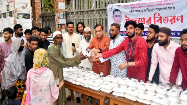 বুধবার (১১ মার্চ) বিকেলে কলেজ ক্যাম্পাস এলাকায় মদনমোহন বিশ্ববিদ্যালয় কলেজ শাখা ছাত্রদলের উদ্যোগে গরীব, অসহায় ও ছিন্নমূল মানুষের মাঝে ইফতার বিতরণকালে প্রধান অতিথির বক্তব্যে তিনি উপরোক্ত কথাগুলো বলেন।