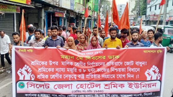 - মহান মে দিবস উপলক্ষে সিলেট জেলা হোটেল শ্রমিক ইউনিয়নের নগরীতে প্রচার মিছিল